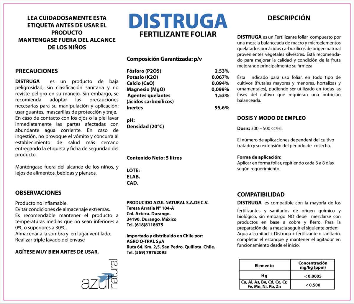 Distruga® es un fertilizante foliar compuesto por una mezcla de alcaloides silvestres con efecto